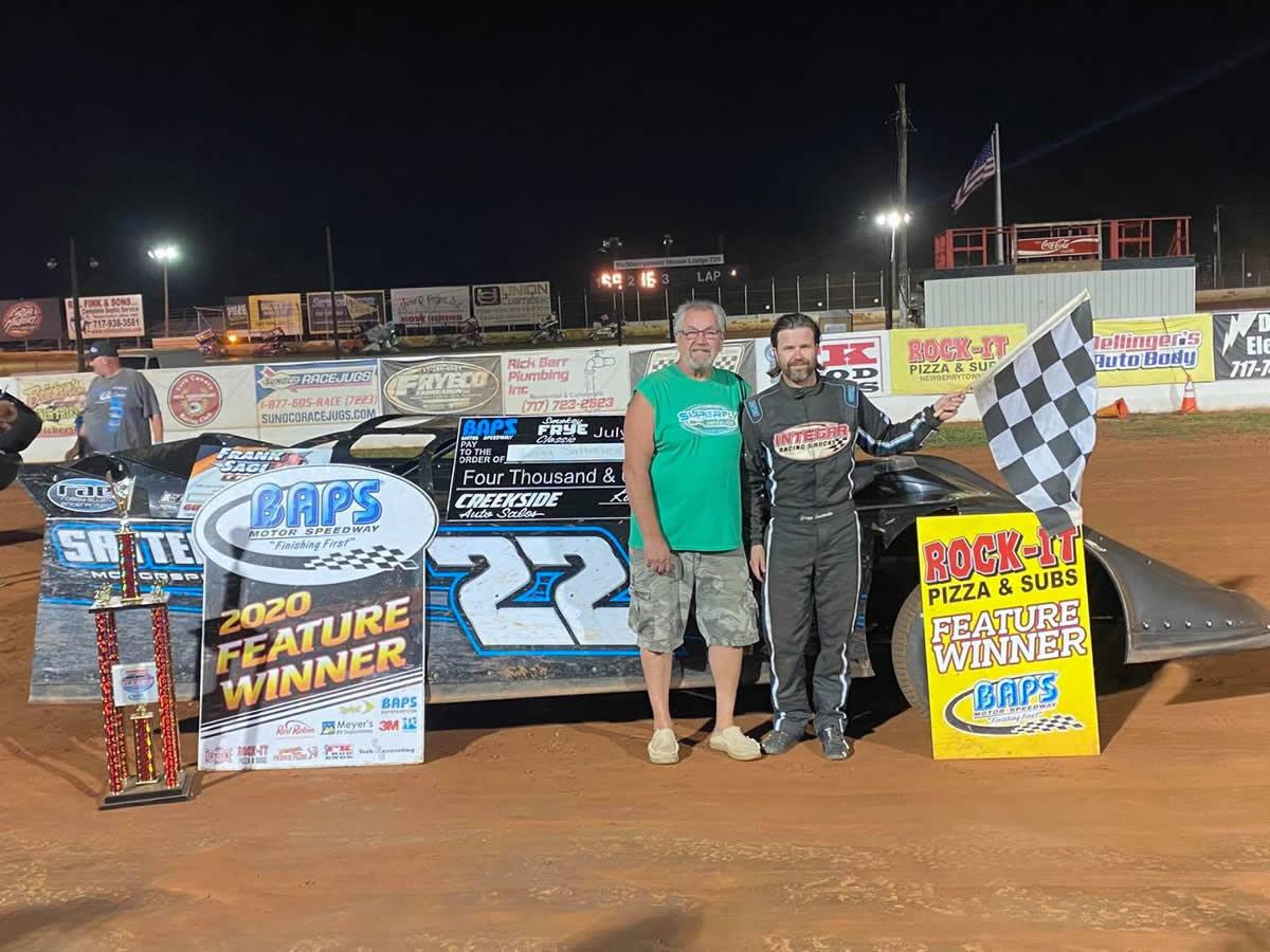 On Saturday afternoon at BAPS Motor Speedway (York Haven, Pa.) for the Creekside Auto Sales Smokey Frye Classic, Gregg followed up the fastest time in his group with a 10-lap heat race victory. With Gene Knaub blasting into the lead on the opening lap of the feature, Satterlee slid ahead of Knaub two laps later to regain the top spot. Holding off the field after a handful of cautions, Gregg Satterlee rolled to his second straight win at the 4/10-mile oval to pick up the $4,000 payday along with a $1,000 bonus from Bernheisel Race Components for back-to-back victories. Taking the checkers ahead of Rick Eckert, Gene Knaub, Wyatt Scott, and Coleby Frye, Satterlee tallied his fifth win of the year.